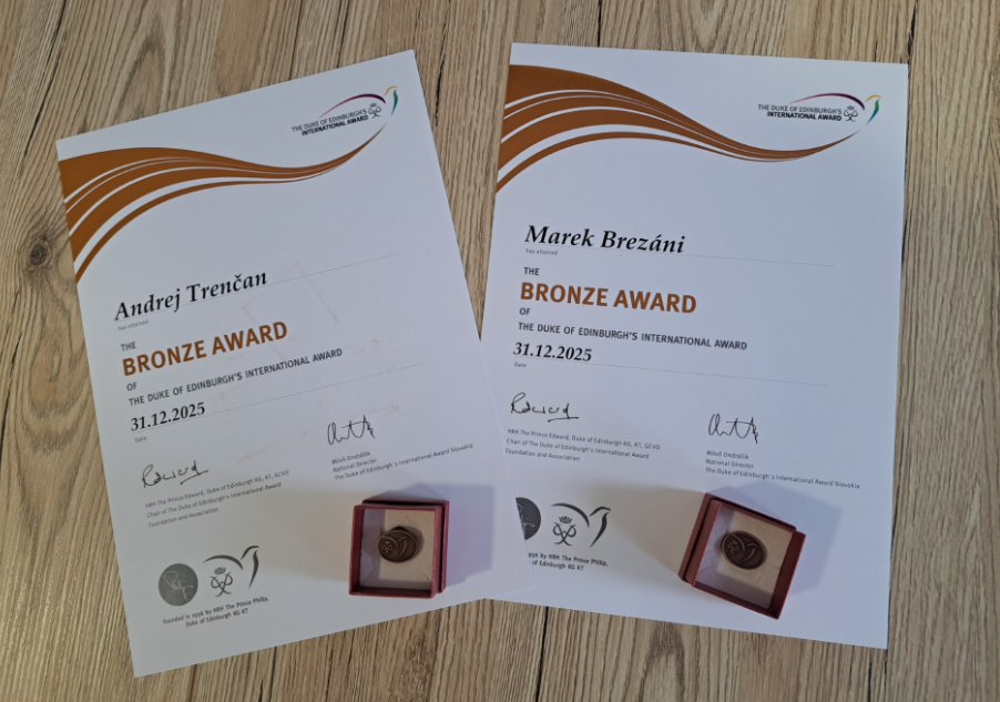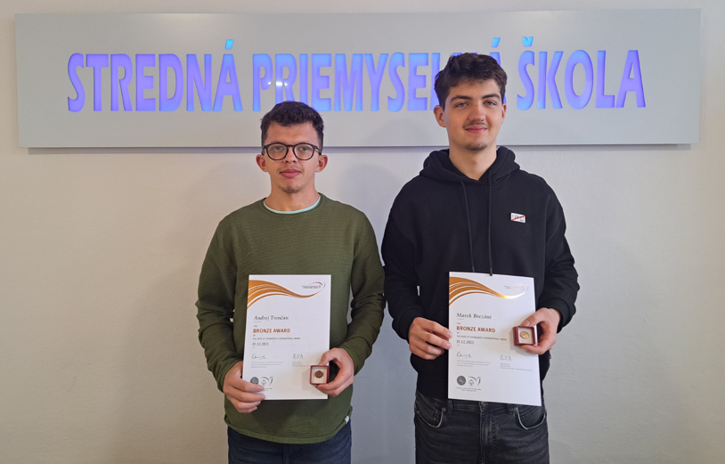 Naši žiaci, prví úspešní DOF - áci, Marek Brezáni (2.D) a Andrej Trenčan (3.D) získali ocenenie BRONZ v medzinárodnej súťaži: