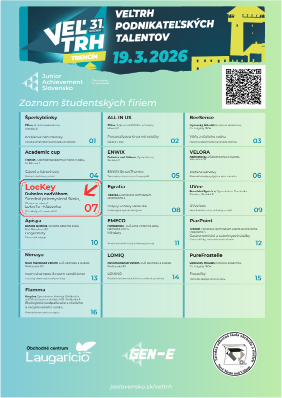Podporte nás, navštívte stánok č. 7 študentskej firmy LocKey: