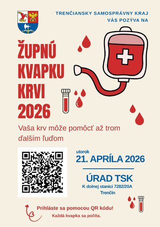 V spolupráci s Národnou transfúznou službou SR už po sedemnásty raz pripravujeme priamo na Úrade TSK župnú Kvapku krvi. S ihlami, ktoré takmer nie je cítiť, vás budeme čakať