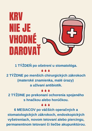 V prílohe tohto mailu nájdete aj stručné usmernenia, čo robiť a čomu sa vyhnúť pred darovaním krvi. Ďalšie užitočné informácie sú dostupné aj na stránke NTS SR: USMERNENIA
